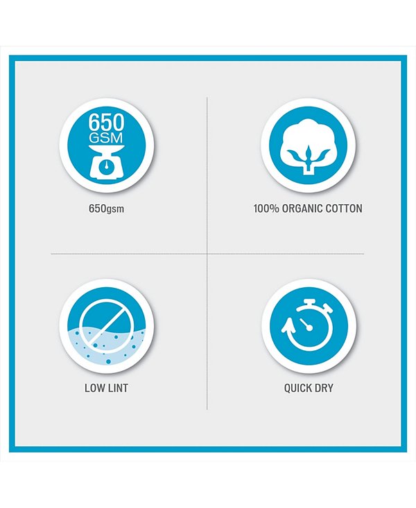 - Long staple cotton yarn towels in 650 grams per square (GSM) weight